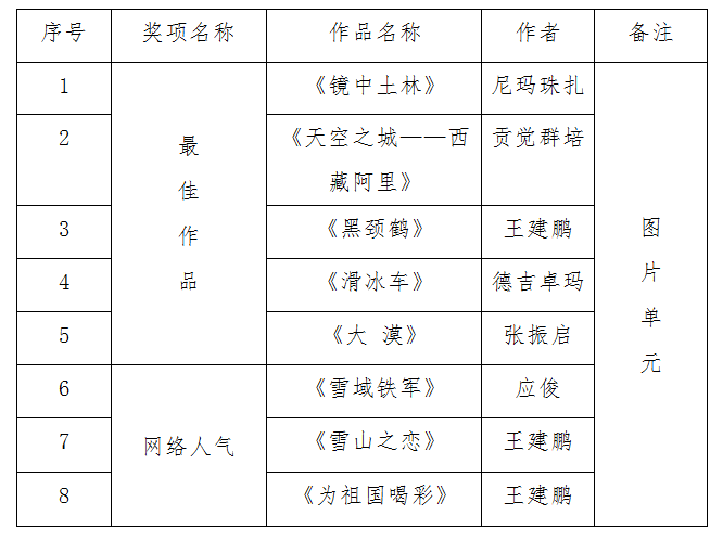 附:第三屆“拍遍西藏”網(wǎng)絡(luò)影像節(jié)獲獎(jiǎng)名單