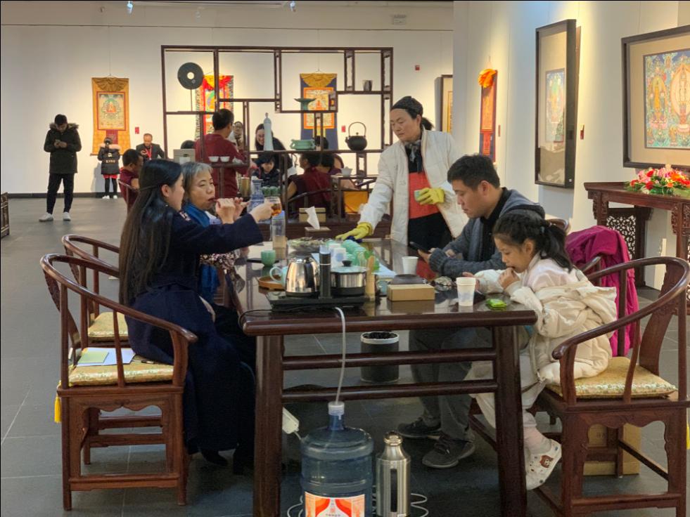 本次展覽以飲藏茶、品藏香、觀壇城、賞唐卡為主題,從多角度展示了我國藏族藝術(shù)源流,探討了藏文化的豐富內(nèi)涵?,F(xiàn)場共計300余位嘉賓參加活動。