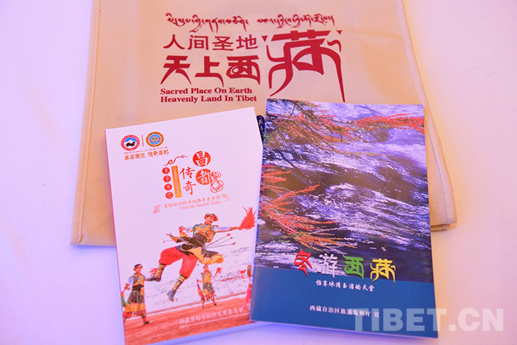 圖為“冬游西藏 共享地球第三極”旅游推介會(huì)成都站現(xiàn)場(chǎng)展示的西藏旅游資料
