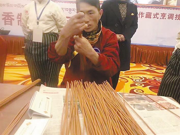 圖為手藝人在制作藏香。