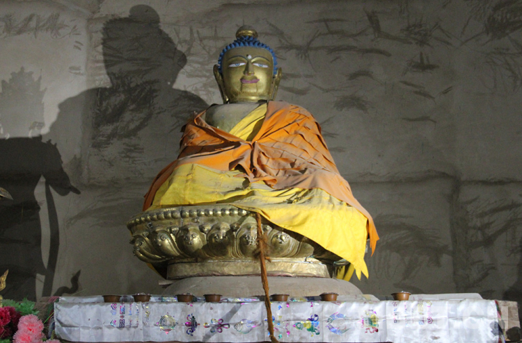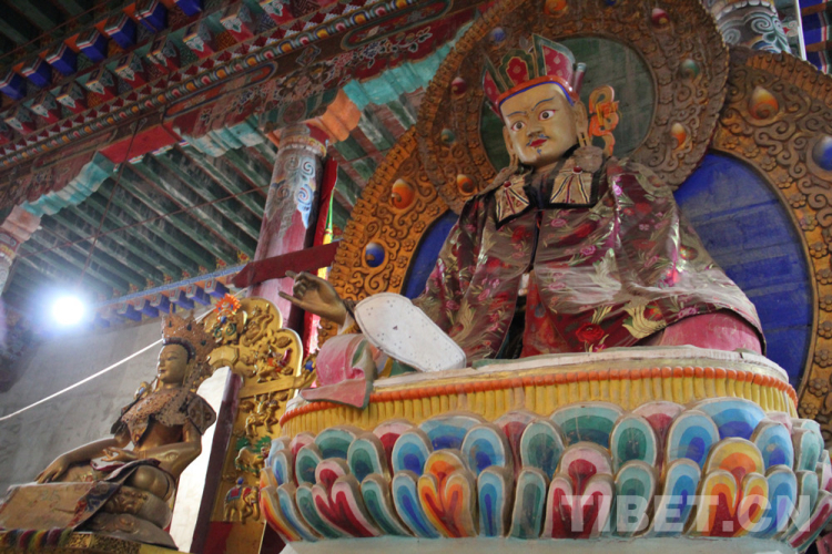 圖為查杰瑪大殿二層“紅殿”內(nèi)供奉的蓮花生大師像 攝影:李元梅
