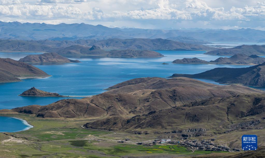 這是羊卓雍錯(7月2日攝,無人機照片)。新華社記者 孫非 攝