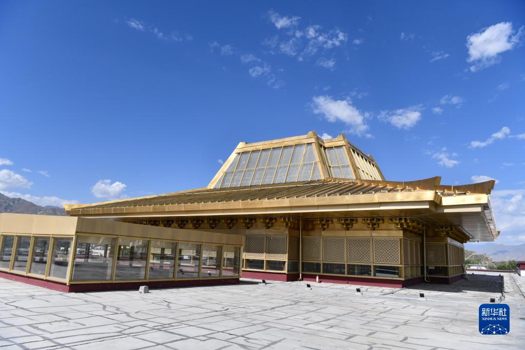 西藏博物館藏式金頂使用了輕型的鋼結構(7月6日攝)。新華社記者 晉美多吉 攝