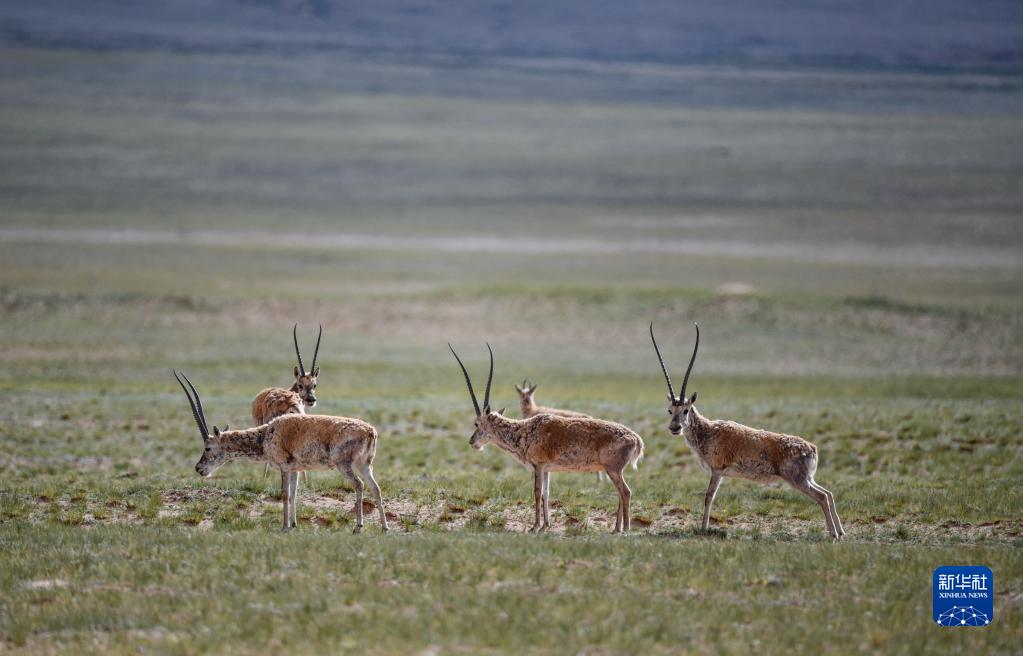 這是在羌塘國家級自然保護區(qū)內(nèi)拍攝的藏羚羊(7月11日攝)。新華社記者 周荻瀟 攝