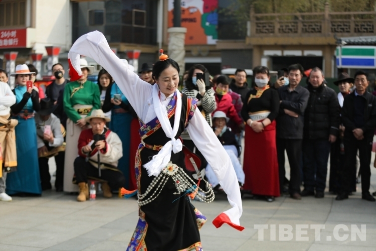 中國(guó)西藏網(wǎng)訊 3月21日,由新的社會(huì)階層人士服務(wù)團(tuán)三分團(tuán)主辦、北京藏地神韻非物質(zhì)文化傳播發(fā)展公司承辦的傳統(tǒng)藏舞公益推廣活動(dòng)在西安舉辦。多位藏舞傳承人與藏舞愛(ài)好者齊聚西安大唐西市進(jìn)行公益推廣交流。鍋莊、伊舞,《歡迎你們到來(lái)》《舞動(dòng)青春年華》《吉祥的哈達(dá)》……一曲接著一曲,舞出了藏族舞蹈的無(wú)限魅力!(中國(guó)西藏網(wǎng) 記者/呂靜 姚浩然)