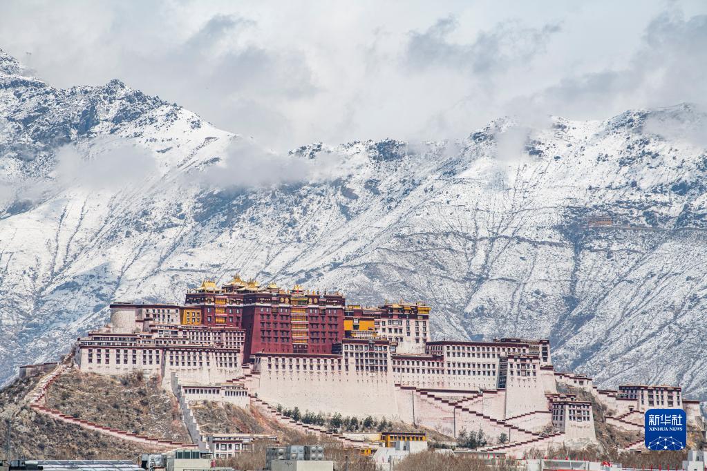 從拉魯濕地拍攝的雪后布達(dá)拉宮(3月30日攝)。新華社記者 晉美多吉 攝