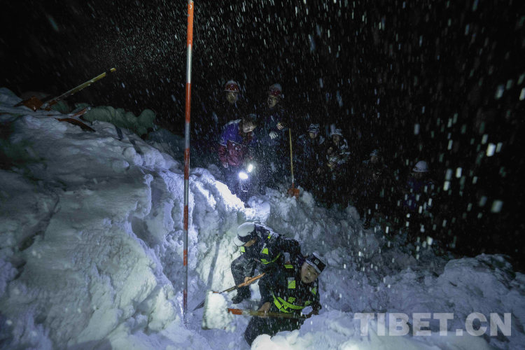 圖為派邊境派出所民警搶救雪崩被困人員