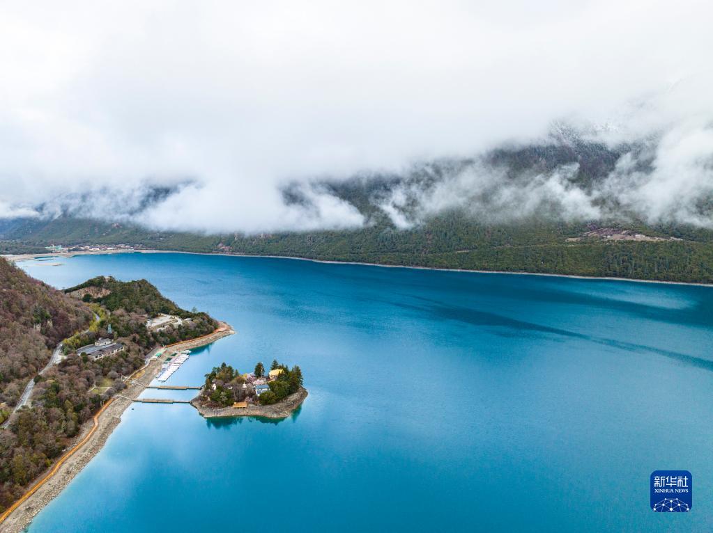 4月17日拍攝的巴松措(無人機(jī)照片)。新華社記者 孫非 攝