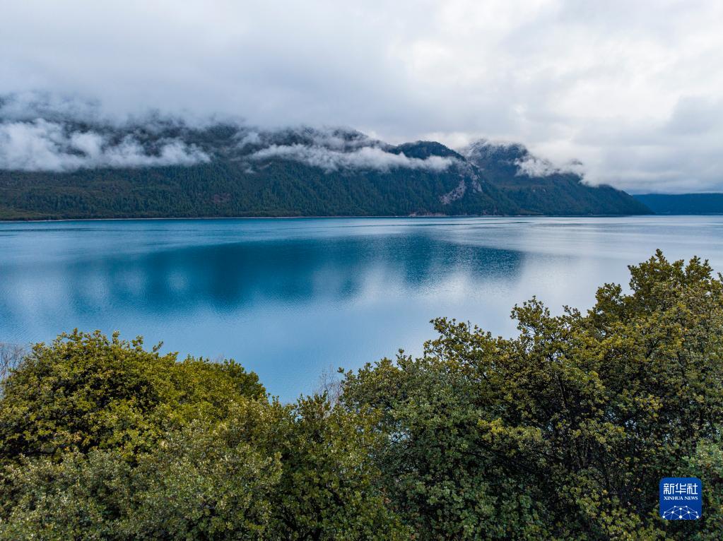 4月17日拍攝的巴松措(無人機(jī)照片)。新華社記者 曹檳 攝
