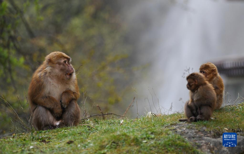 勒布溝里的獼猴(4月25日攝)。新華社記者 張汝鋒 攝