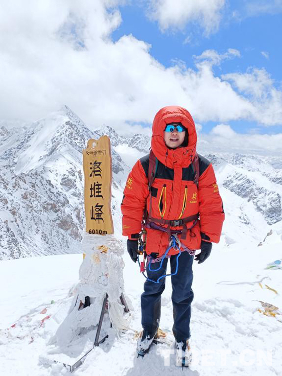 圖為登山向?qū)У┰鰩ьI(lǐng)隊友們沖頂洛堆峰