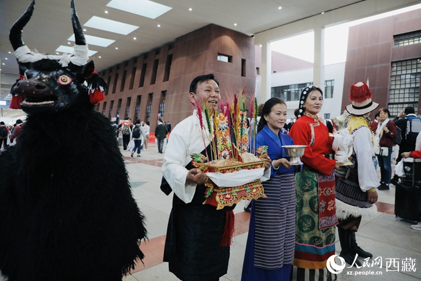 5月31日晚,隨著火車的抵達(dá),來自北京的500名游客乘坐 “心連心 京藏號”援藏旅游專列抵達(dá)西藏拉薩。