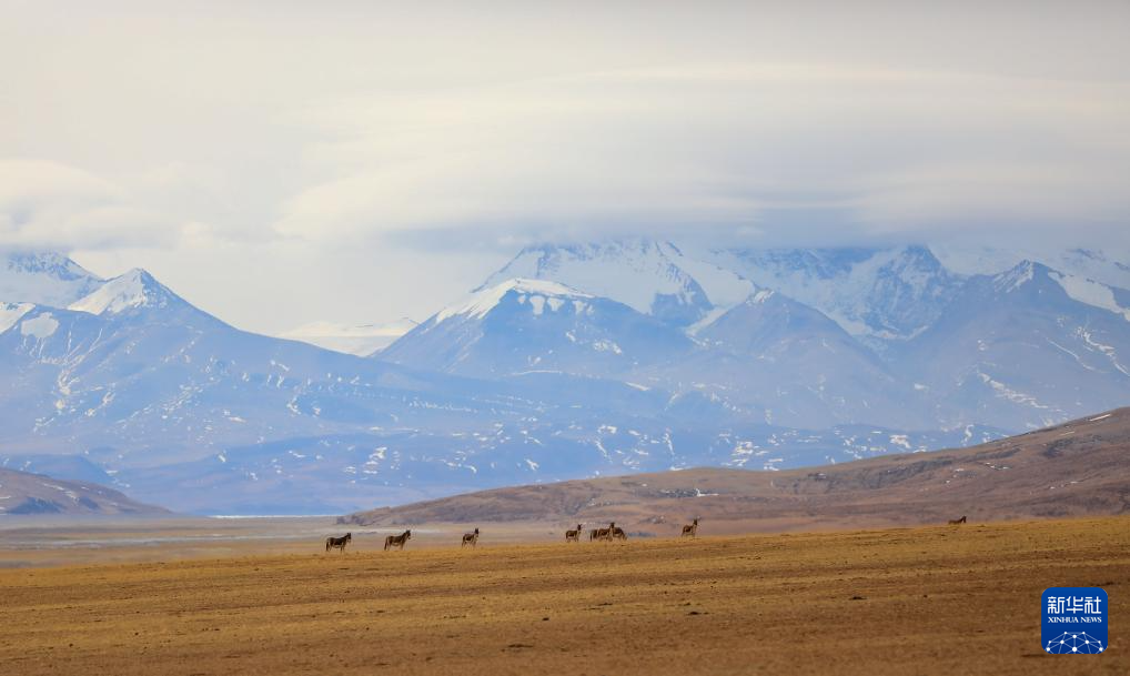 3月29日,藏野驢在西藏阿里地區(qū)普蘭縣境內(nèi)岡仁波齊峰下覓食。新華社發(fā)(劉曉東攝)