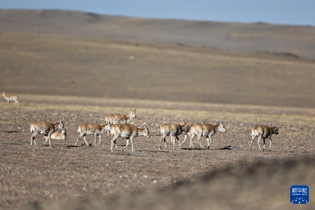 藏羚羊向產(chǎn)羔地遷徙(5月8日攝)。新華社記者 丁增尼達(dá) 攝