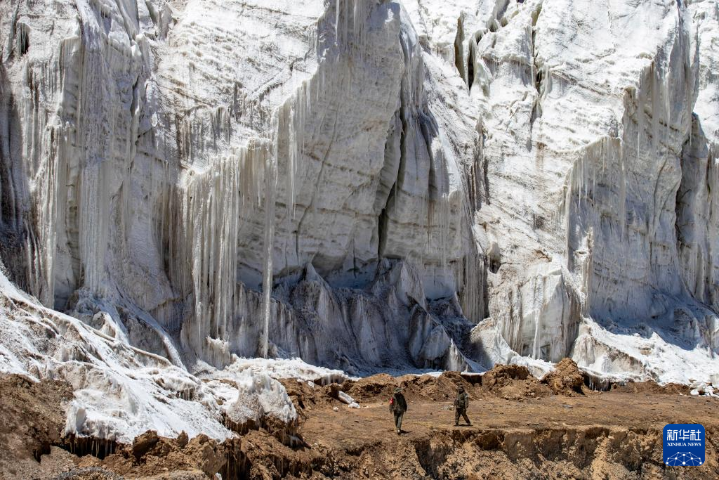 ??野生動物專業(yè)管護(hù)隊員在無人區(qū)深處的藏色崗日冰川巡查(5月11日攝)。新華社記者 姜帆 攝
