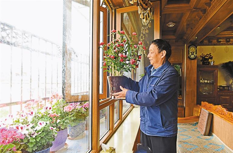 圖為拉薩市城關(guān)區(qū)加榮棚戶區(qū)小康安居園的居民拉瓊正在家里侍弄花草。 記者 蔣蓋 攝