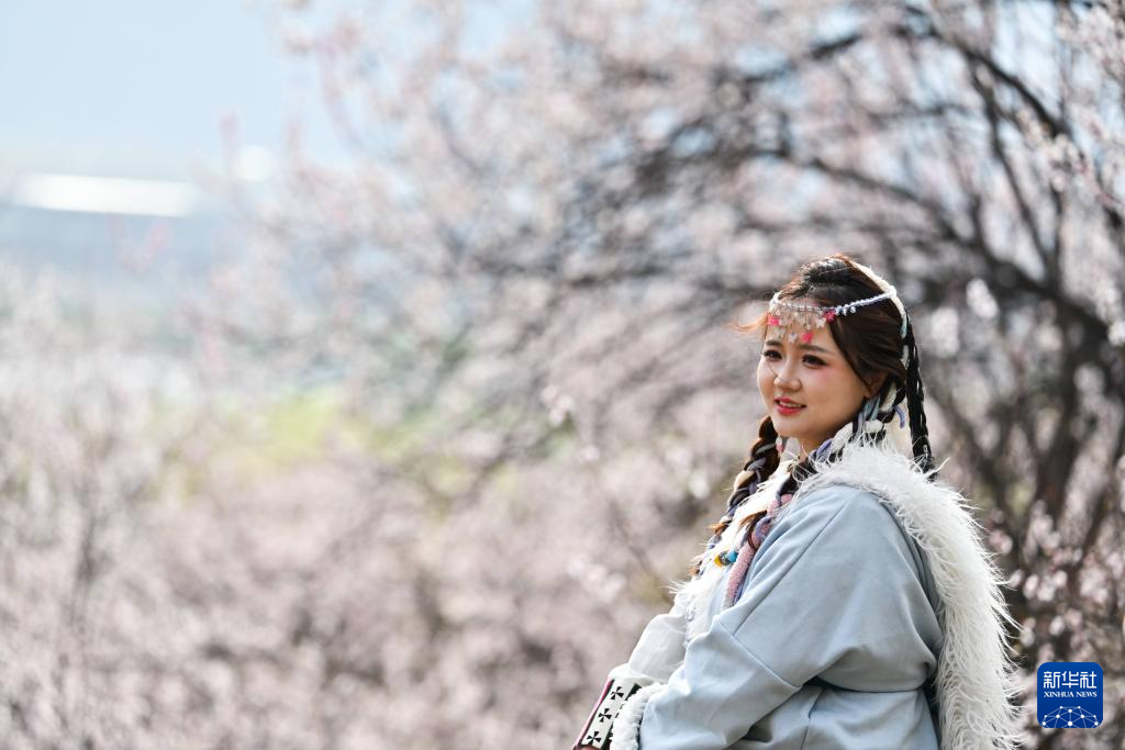 3月29日,游客在林芝市巴宜區(qū)嘎拉村賞花拍照。新華社記者 齊芷玥 攝 ??