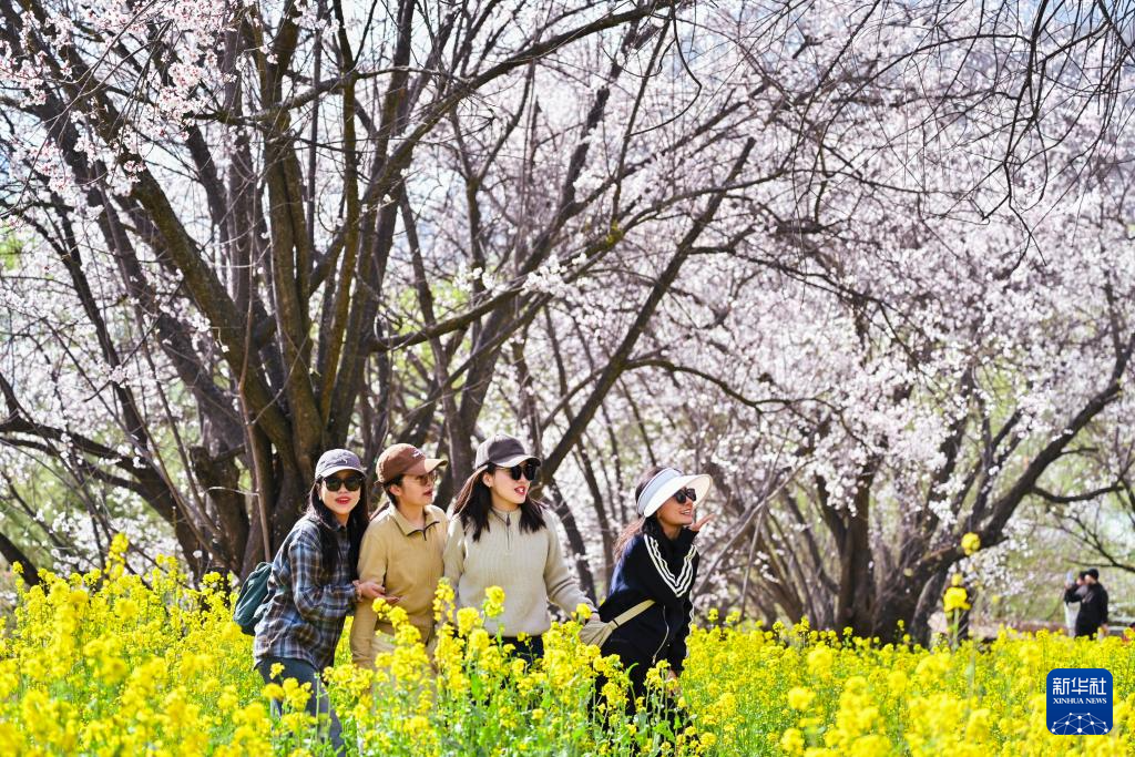 3月29日,游客在林芝市巴宜區(qū)嘎拉村賞花游玩。新華社記者 齊芷玥 攝 ??