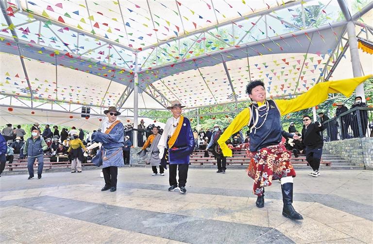 市民在宗角祿康公園跳鍋莊。記者 唐斌 攝