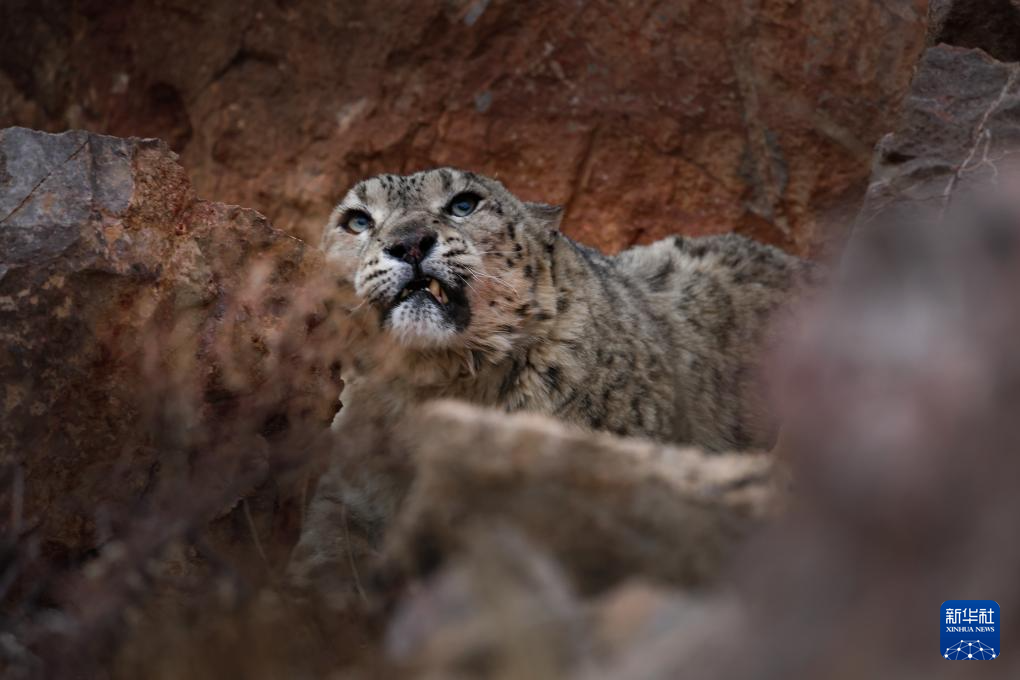 西藏阿里改則縣改則鎮(zhèn)玉多村附近巖山區(qū)域拍攝到的國家一級保護動物雪豹(4月18日攝)。新華社發(fā)(索朗仁青 攝)