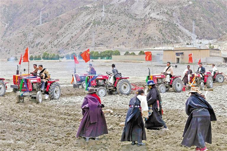 5月的那曲迎來春耕春播。在比如縣比如鎮(zhèn)的田野里,村民們駕駛著農(nóng)機(jī)翻耕田地,為今年的春播做準(zhǔn)備。記者 萬靖 通訊員 白瑪曲吉 攝