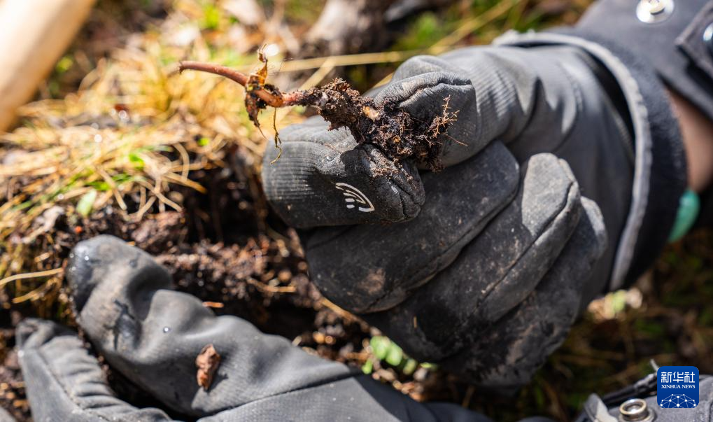 這是在那曲市索縣西昌鄉(xiāng)拍攝的剛采挖出的蟲草(5月18日攝)。新華社記者 丁增尼達(dá) 攝 ??