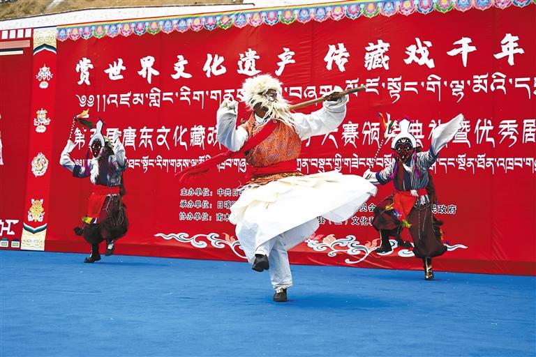 第五屆唐東文化藏戲(折子戲)大賽決賽上,參賽隊(duì)伍正在表演。