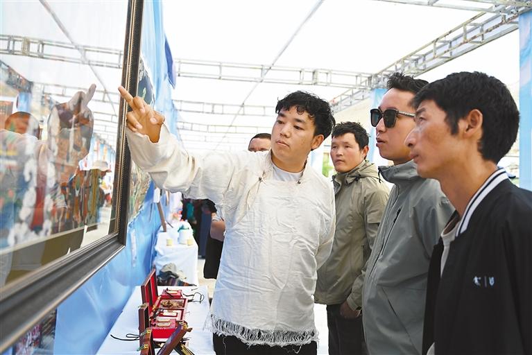 在欣賞視聽盛宴的同時(shí),國(guó)家級(jí)非遺項(xiàng)目江孜卡墊織造技藝、自治區(qū)級(jí)非遺項(xiàng)目牛村陶器制作技藝、市級(jí)非遺項(xiàng)目恰哇編織技藝等50個(gè)非遺項(xiàng)目,以及民族手工業(yè)產(chǎn)品、南木林縣縣級(jí)非遺產(chǎn)品集中展覽展銷,備受消費(fèi)者青睞。各非遺產(chǎn)品展銷點(diǎn)收入不斷、訂單不斷,經(jīng)初步統(tǒng)計(jì),活動(dòng)現(xiàn)場(chǎng)非遺產(chǎn)品銷售總額達(dá)45萬余元。