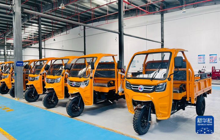 6月8日,西藏吉隆瑞尼機械制造有限公司倉庫內等待出口的三輪車。新華社記者蔣夢辰 攝