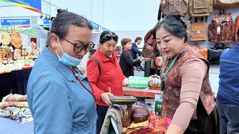 展會(huì)現(xiàn)場人頭攢動(dòng),熱鬧非凡。150家參展商帶來的特色產(chǎn)品鋪滿了各個(gè)展位,空氣中彌漫著多元?dú)庀?。法國紅酒的醇厚酒香、印度尼西亞咖啡的濃郁焦香、伊朗藏紅花的獨(dú)特芬芳交織在一起,與西藏本土青稞制品的麥香、高原蜂蜜的甜香相互映襯。在巴基斯坦展位前,參展商Asif正熱情地向顧客展示手工羊毛地毯,“我已經(jīng)連續(xù)三年參加,之前銷量都很好,這次帶來的地毯紋樣融入了藏式元素,希望能更受歡迎?!?/p>