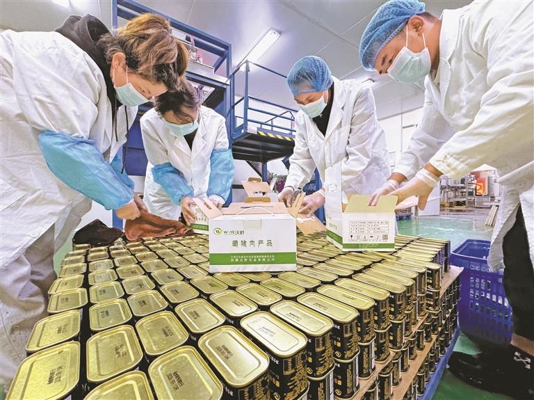 圖為林芝市工布江達(dá)縣藏香豬產(chǎn)業(yè)園內(nèi),員工在對加工好的藏香豬肉罐頭進(jìn)行分類打包。記者 白瑪澤旺 次仁平措 攝