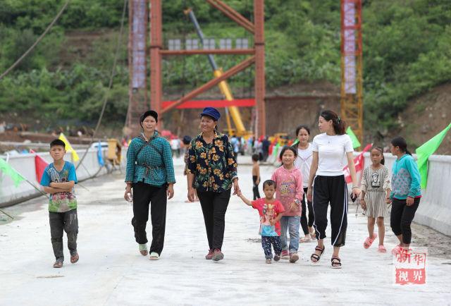 四川馮家坪村村民走在貫通的跨江大橋上。新華社記者江宏景 攝