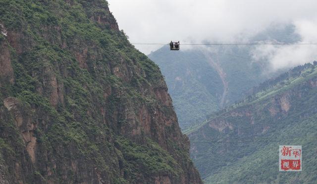 居住在金沙江兩岸的村民通過溜索過江。新華社記者江宏景 攝