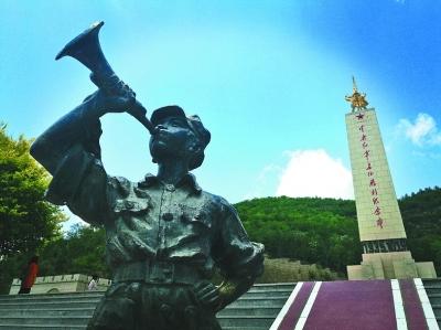 位于陜西延安吳起縣的中央紅軍長征勝利紀(jì)念園內(nèi)的雕塑和紀(jì)念碑。光明圖片