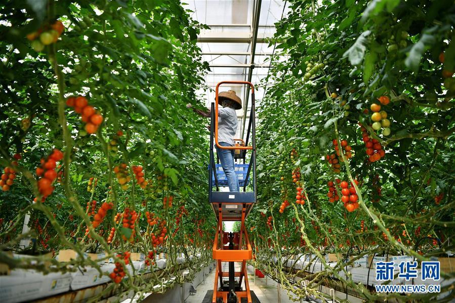 在陵水現(xiàn)代農(nóng)業(yè)示范基地,工人在管理通過擱架吊蔓式栽培技術(shù)種植的詹妮瑞番茄(3月26日攝)。在海南省陵水現(xiàn)代農(nóng)業(yè)示范基地,無土栽培技術(shù)、計算機自動化控制系統(tǒng)、立體垂直旋轉(zhuǎn)栽培、有機循環(huán)利用等多種科技元素聚集在一起。農(nóng)業(yè)工廠化的運作模式,讓大棚里的瓜菜產(chǎn)量較傳統(tǒng)種植翻了幾番,農(nóng)民收入也大幅提高。新華社記者 郭程 攝