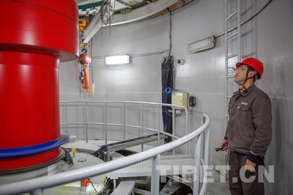 圖為劉偉在檢查水輪發(fā)電機組。