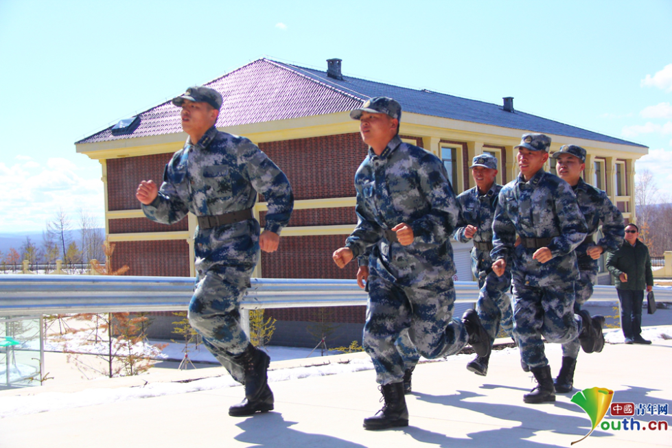 空軍漠河雷達站的官兵進行耐寒訓(xùn)練??哲娔永走_站供圖