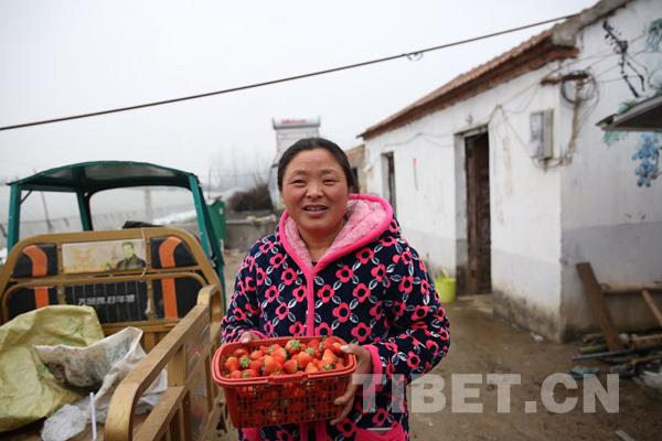 圖為記者走進東陵村現(xiàn)代新型產(chǎn)業(yè)園的草莓大棚 攝影:次仁頓珠
