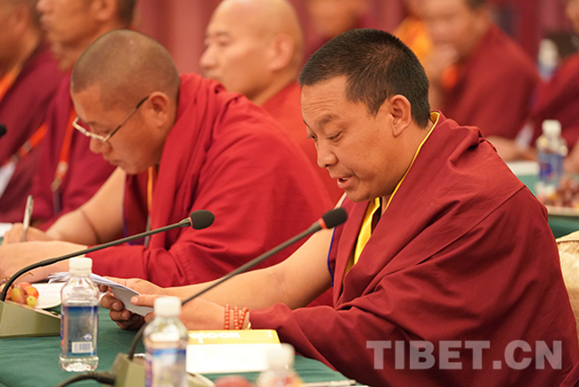 圖為山南市佛教協(xié)會(huì)會(huì)長(zhǎng)達(dá)娃次仁發(fā)言。攝影:王淑