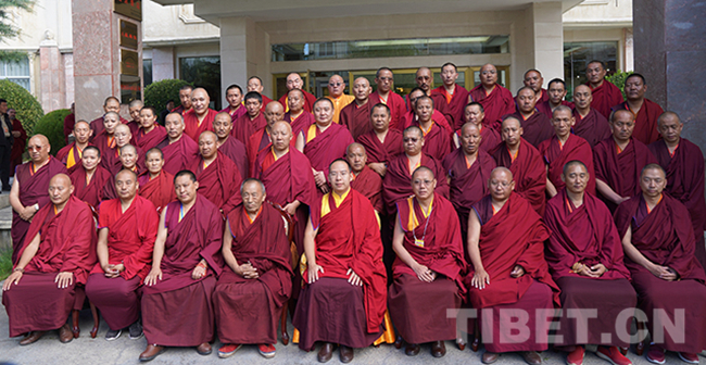 圖為十一世班禪與參加座談會(huì)的山南市宗教界代表人士合影。攝影:王淑