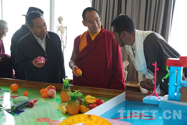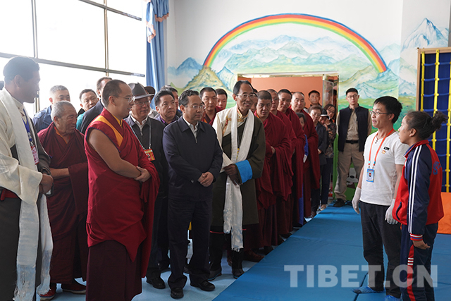 圖為十一世班禪參觀學校殘疾人職業(yè)教育中心。攝影:王淑