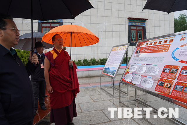 圖為十一世班禪冒雨考察鄉(xiāng)村振興戰(zhàn)略實施情況。攝影:王淑