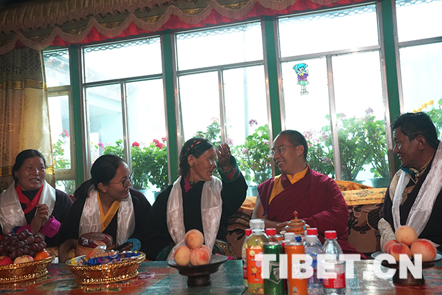 打掃庭院、布置藏式客廳、擺放各種水果和飲品……為了恭迎十一世班禪的到來,達瓦一家一大早便忙碌起來。他說,“班禪仁波切來到我家,對于我們家來說是歷史性的時刻,是我們?nèi)胰诵迊淼母7??!?/p>
