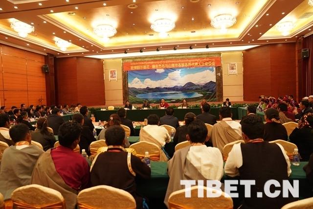 座談會上,西藏自治區(qū)人大常委會相關負責人從經濟持續(xù)健康發(fā)展、生態(tài)環(huán)境保持良好、民生福祉大幅改善等七個方面介紹了山南市經濟社會發(fā)展情況,隆子縣斗玉珞巴鄉(xiāng)黨委副書記、鄉(xiāng)長扎西央金、山南市乃東區(qū)昌珠鎮(zhèn)克松社區(qū)邊巴次仁、宗教界代表阿旺單增、乃東縣民族嘩嘰手工編織專業(yè)合作社負責人巴桑分別圍繞著邊境小康村建設、鄉(xiāng)村振興、非公經濟等內容發(fā)言。