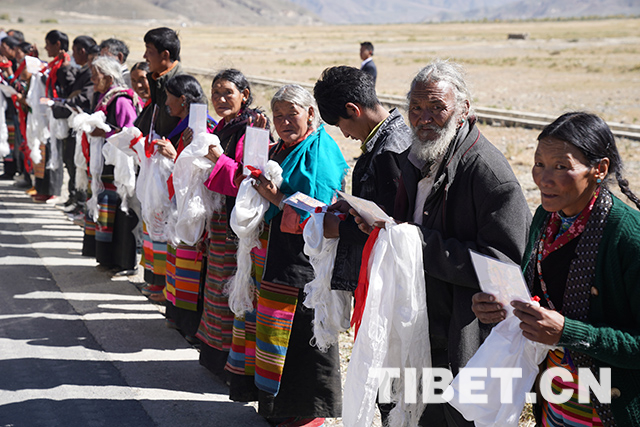 圖為十一世班禪在白朗縣考察途中為沿途信教群眾摸頂賜福。攝影:王淑