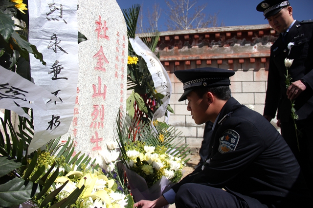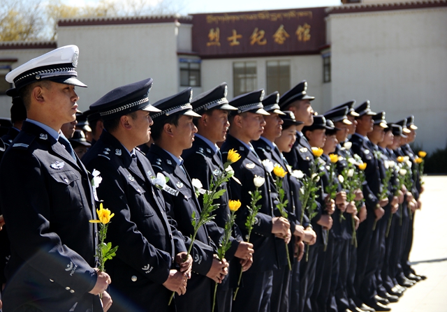 緬懷革命先烈,傳承革命精神?!拔覀儾荒芡洖闋幦∶褡褰夥藕腿嗣裥腋6I(xiàn)身的烈士。他們拋頭顱、灑熱血換來了我們今天的幸福生活,他們是人民心中永恒的豐碑?!痹诂F(xiàn)場的拉薩市公安局張警官說。