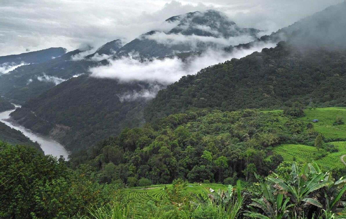 2018年4月,我走進了墨脫茶葉的采摘現(xiàn)場。艷陽下,當?shù)剞r(nóng)戶穿梭于茶園中。墨脫縣茶園的茶樹長得十分茂盛,高度幾乎可以觸及人腰。在藍天白云下,茶園郁郁蔥蔥。