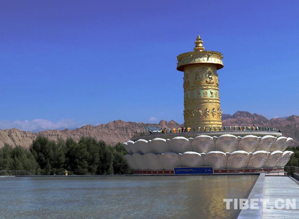 最后,班禪大師一行來到位于黃河岸邊的“中華福運輪”,“中華福運輪”轉(zhuǎn)經(jīng)輪主體高42米,于2012年獲頒吉尼斯世界紀(jì)錄?!爸腥A福運輪”坐北向南,由黃河民俗博物館、倒影池、轉(zhuǎn)經(jīng)塔三部分組成。班禪大師一行,背對著翻騰著青色波濤的黃河坐下,面對著“中華福運輪”,班禪帶領(lǐng)僧眾念誦祈愿經(jīng)文,祈禱世界和平、國泰民安、五谷豐登、眾生幸福。(中國西藏網(wǎng)文、圖/袁星宇)