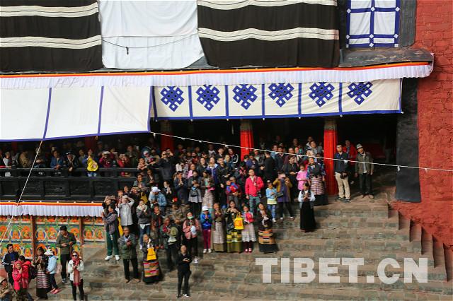 清晨,歷史文化名城日喀則天高氣爽,眾多信眾和游客在扎什倫布寺大門前,翹首恭候班禪一行。攝影:王淑。