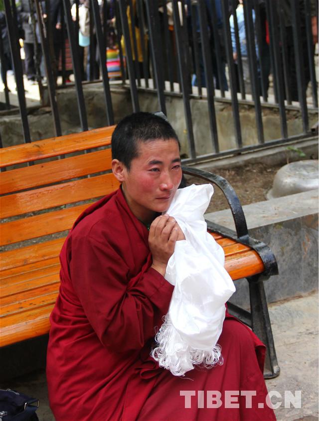 圖為見到班禪后流下激動的眼淚的僧尼。攝影:李元梅。(中國西藏網(wǎng)圖、文/王淑李元梅)